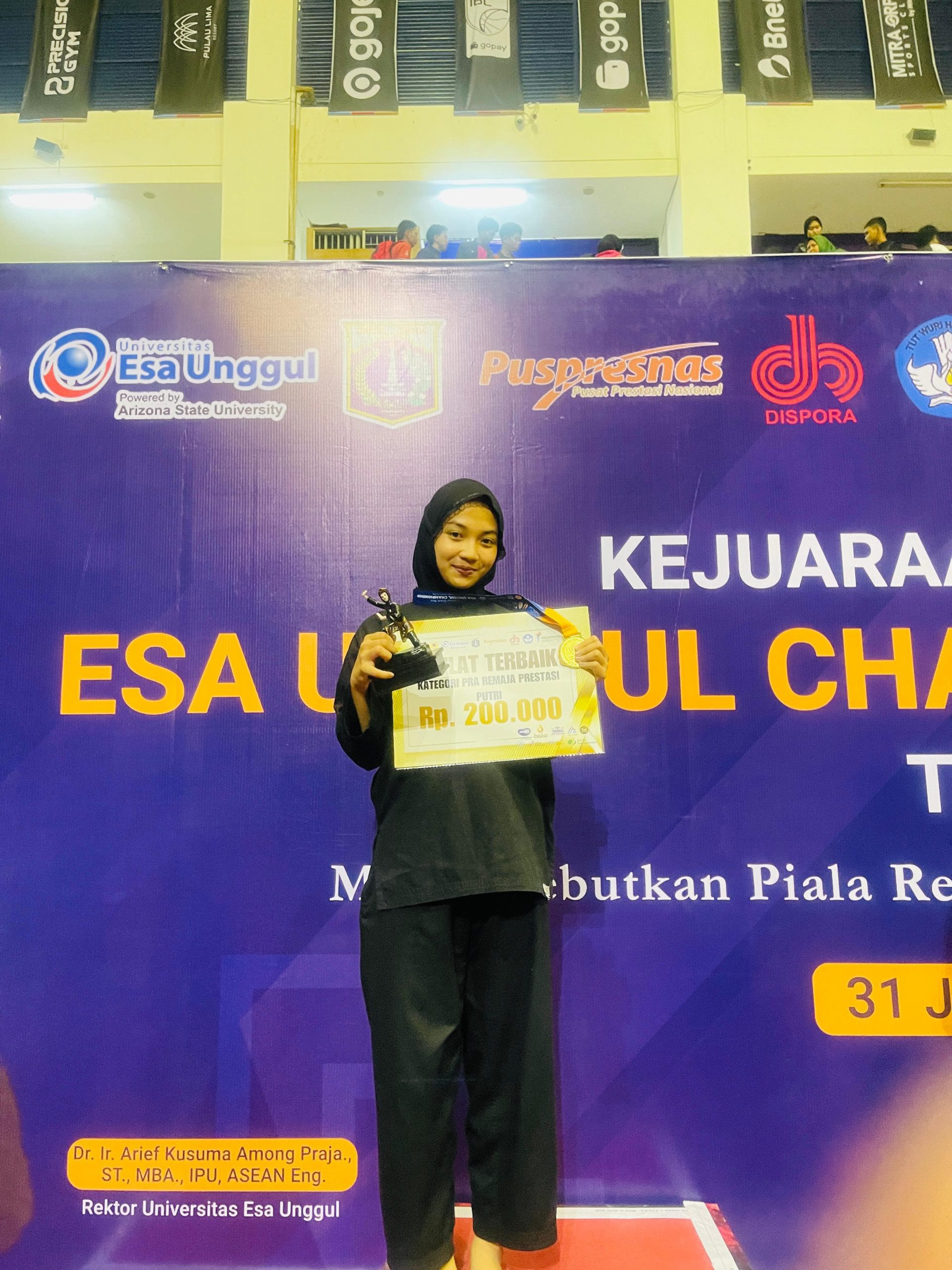 JAKARTA | Jejakwarta.id – Kejuaraan Pencak Silat Esa Unggul Championship Tingkat Nasional yang digelar selama dua hari di GOR Ciracas, Jakarta Timur, menghasilkan para juara di berbagai kategori usia. Almira, peserta kategori remaja, berhasil meraih juara satu dan menyandang gelar Atlet Terbaik pada final yang berlangsung Minggu (01/02/2026).
