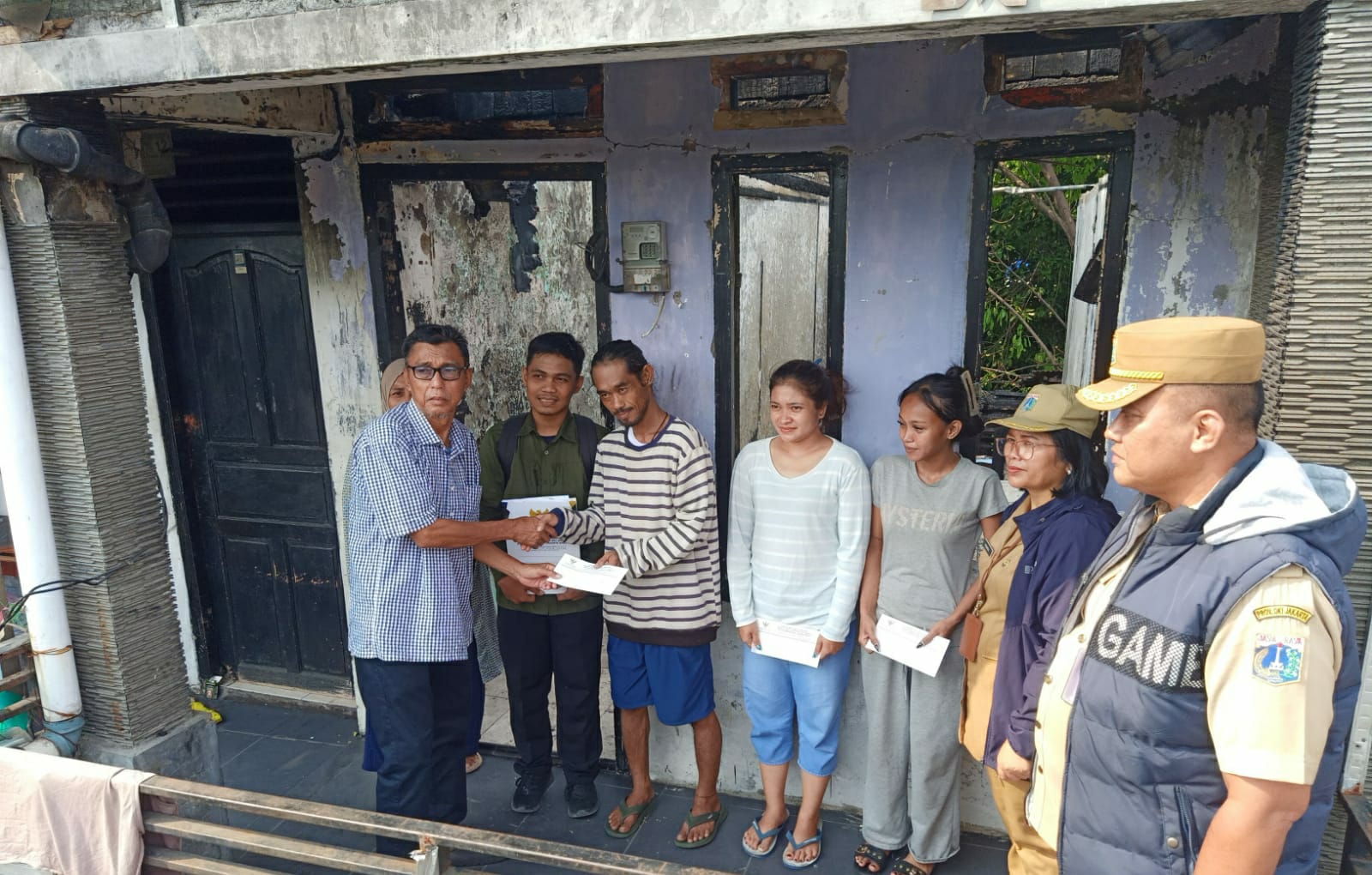 Petugas BAZNAS BAZIS yaitu Zeyn yang di dampingi dan di saksikan oleh Kepala Seksi PLT Kesra Rosinta Simanjuntak,S.ST dan juga Kepala Seksi Ekbang Fahmi Alkadri,SH pegawai dari Kelurahan Angke yang memberikan langsung kepada warga korban kebakaran.