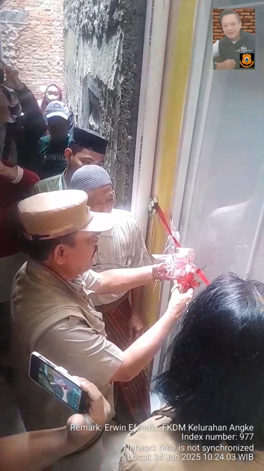 Peresmian Bedah Rumah terhadap warga bernama Bapak Nursan salah satu warga Kelurahan Angke yang terletak di Jalan Angke Barat RT 013 RW 01, Kelurahan Angke, Kecamatan Tambora, Jakarta Barat ini ditandai pemotongan pita oleh Lurah Firmansyah yang dampingi Kepala Seksi Pemerintahan (Kasipem), Rosinta Simanjuntak,S.ST.