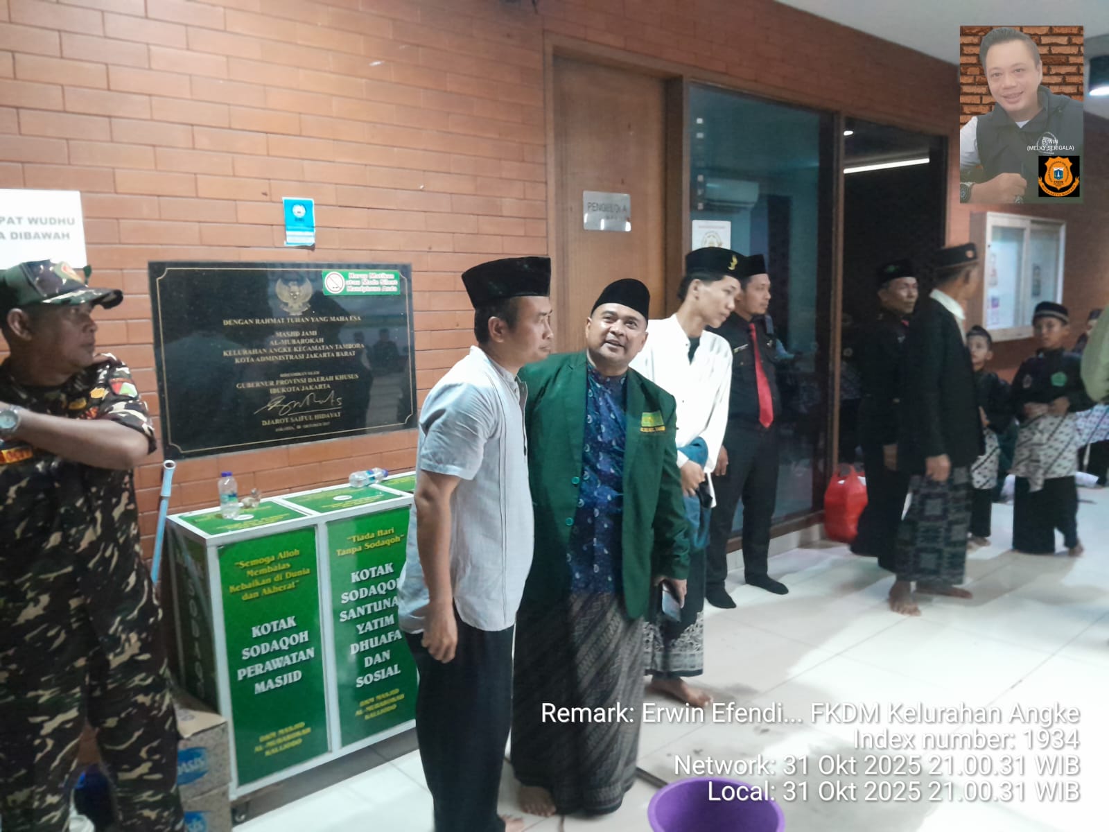 JAKARTA | Jejakwarta.id – Hujan lebat tak menyuruti semangat para pengurus Majelis Wakil Cabang Nahdlatul Ulama (MWC NU) Kecamatan Tambora dalam menggelar Hari Santri tahun 2025 pada Jum’at 31-10-2025 pukul 19:30 WIB di halaman Masjid Al-Mubarokah yang terletak di Jl Pangeran Tubagus Angke Rt 07/10 Kelurahan Angke Kecamatan Tambora Jakarta Barat.