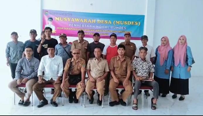 Tangerang | jejakwarta.id – Musyawarah Desa (Musdes) Khusus tentang penyertaan modal Badan Usaha Milik Desa (BUMDes) Desa Sukamanah Berlangsung di gelar di Ruko Kampung Parungjahe, Desa Sukamanah, Kecamatan Jambe, Kabupaten Tangerang, Provinsi Banten selasa (11/11/2025).