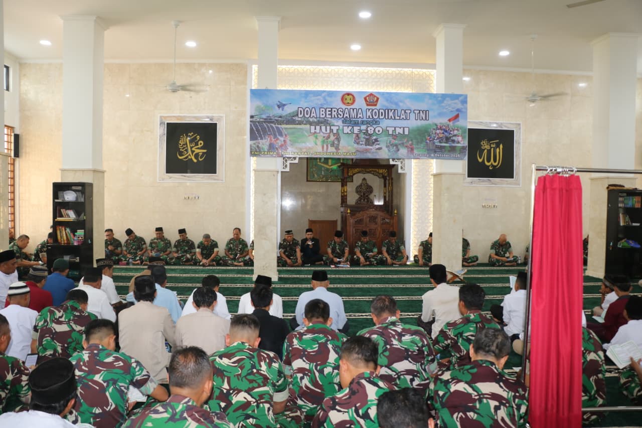 Dalam sambutan Dankodiklat TNI yang dibacakan Wadan Kodiklat TNI, Marsda TNI Bambang Gunarto, S.T., M.M., M.Sc. doa bersama ini dilaksanakan dalam rangka memperingati hut ke-80 TNI dengan tema “TNI Prima, TNI Rakyat, Indonesia Maju” dengan maksud tujuan agar selalu diberikan bimbingan dan perlindungan Tuhan Yang Maha Esa sehingga seluruh prajurit TNI dapat terus menjalankan tugas dengan baik serta senantiasa diberikan kemudahan dan keberhasilan dalam setiap pelaksanaan tugasnya.